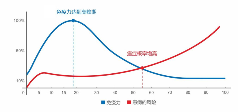 人體免疫力在 18-20歲左右達到巔峰,之后隨著年齡增長逐漸下滑,人體對抗病毒、細菌的能力也隨之下降,患病風險提高,人類80%的疾病與免疫相關。